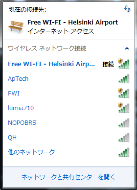 今度は名前もわかりやすく、『Free WI-FI-Helsinki Airport』のSSIDのネットワークに接続した。ヘルシンキ空港はハブ空港として利用されており、規模が大きいからか回線も安定していた。