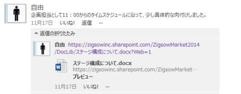 しかし、これこそがOffice365の神髄ではないだろうか?仮に全員が日本国内にいたとしても、全員が一同に会する機会を持てないかもしれない。そんな時にも仕事は進めなければならないとしたら・・・そんなシミュレーションが我々にとって重要なのではないか?と、すれば、そのつもりで話を進めて行こうと考えた。いずれにせよ、議論を開始したかった私は一つの企画書をチームサイトに投げることとした。それがここから議論された「Zigsowマーケット」である。