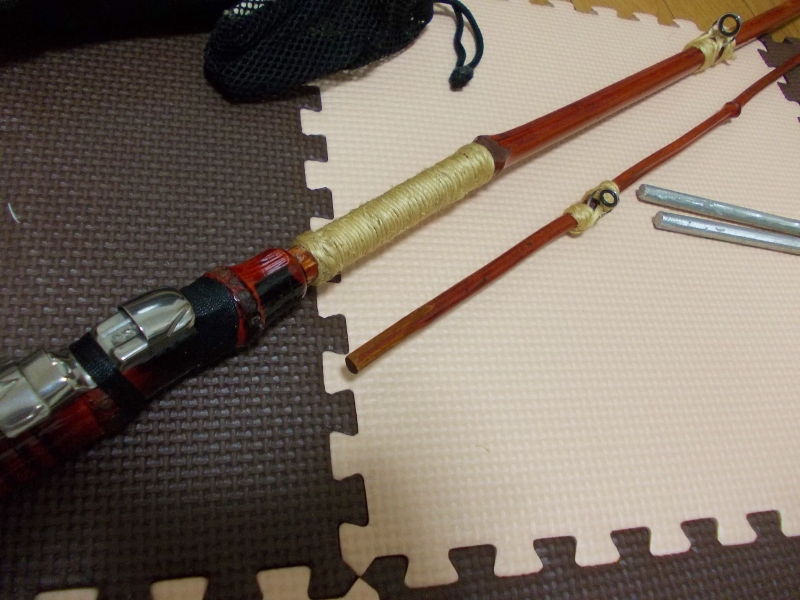 収納しやすいように切り分けたのでグリップ部と竿の強度を