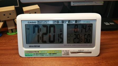 夜になるとLEDライトが常時点灯しているので、部屋の電気を消しても、時刻がすぐにわかります。注意が必要なのは目線に置くならいいけど、視野角があるので下の方からみあげると、ただの緑の画面にみえてしまいます。