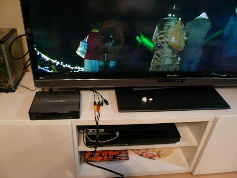 試しに、PCのディスプレイにHDMI接続してみたところ、きちんとビデオカメラの映像も表示され、HDDにキャプチャすることができました。単身赴任先のテレビ(↓)でもOKでした。