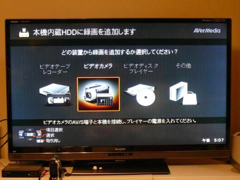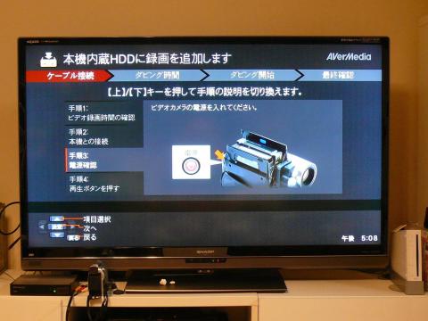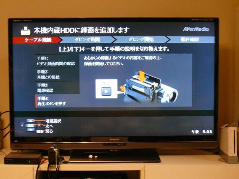 試しにデジタルビデオからの取り込みを行ってみました。取り込みに関しても、順番に画面に手順が表示されるので、マニュアルなどがなくても簡単に操作できます。(リモコンの使い勝手は別ですが.....)