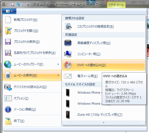 しかし、ムービーメーカーでDVDを作成しようとすると、ビットレートが2.99Mbpsとなり画質が劣化する可能性があります。