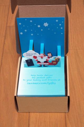 ふたを開けてみると、飛び出す絵本だ。懐かしいですね。少し早いですが、サンタクロースがお出迎えしてくれました。