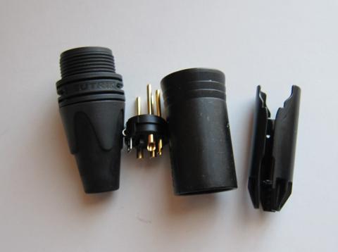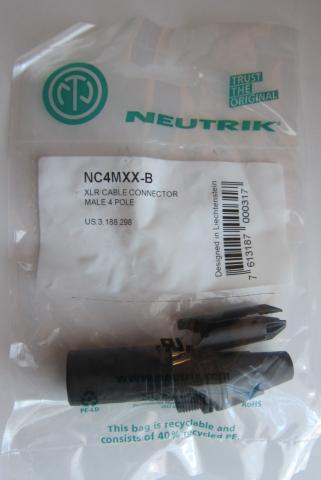 NEUTRIK製のXLR4ピンオスプラグの NC4MXX-Bです.今回はバランスケーブル用なのでボディ分離のNC4MXX-Bを選択します.