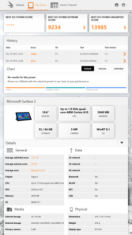 「Ice Storm Extreme」は9234、「Ice Storm Unlimited」は13985という結果。