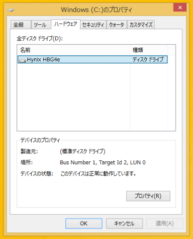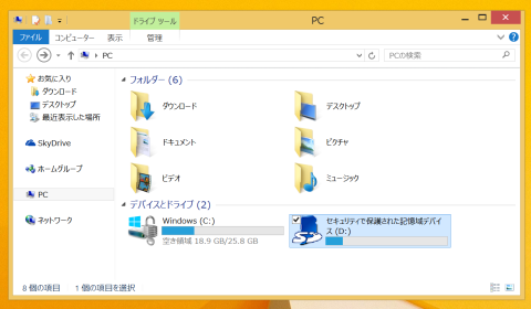 ストレージは、25.68GBをCドライブにBitLockerで暗号化されて割り当てられています。