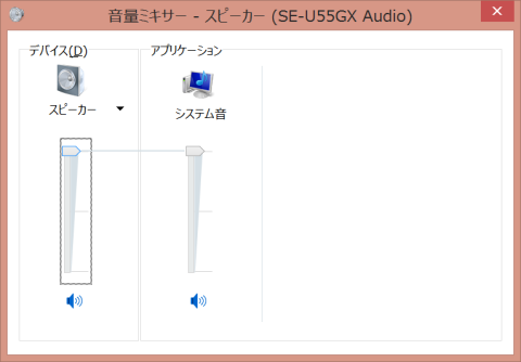 USBケーブルで接続しただけで、SE-U55GXというデバイス名もきちんと表示されて、動作を開始します。ヘッドフォンを接続して音楽再生を試してみましたが、正常に出力されていました。