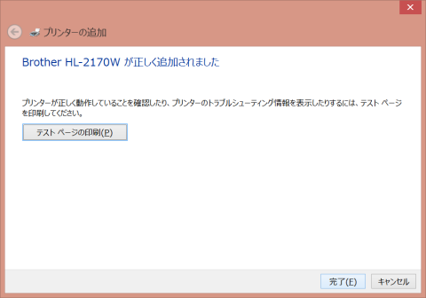 一方で、あっさりと使えて感心したのが、ブラザー製のレーザープリンター、HL-2170Wです。これはブラザーの公式サポート情報でも案内されているのですが、Windows RT系のOSでは、内蔵の標準プリンタードライバーで問題なく動作します。