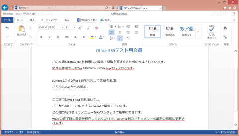 また、上のサンプル内でも記載していますが、ローカルアプリのWordで編集した場合でも、終了時に変更内容を保存しておけば、SkyDrive Pro上のドキュメントにも変更内容は反映されます。通常はドキュメントがどちらにあるのか意識する必要が感じられません。