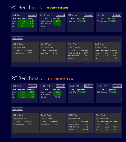 性能はSurface2の圧勝ですが、これが最近発売された次世代ATOM(Z3770)との