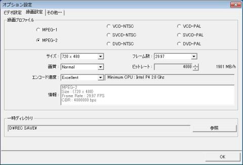 付属ソフトのHONESTECK DV2.5 を使いMPEG2 リアルエンコードがお勧めです
