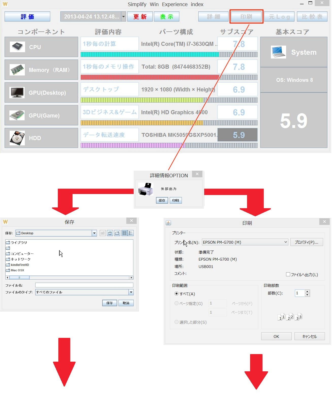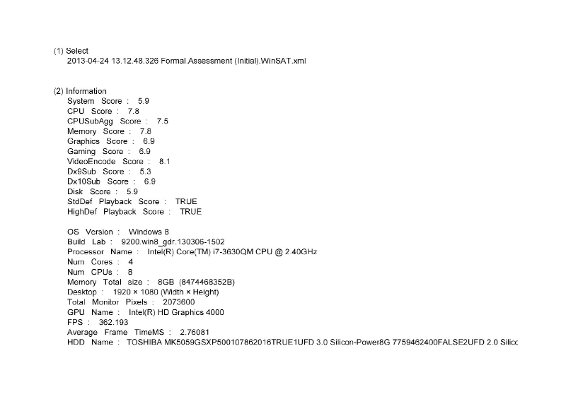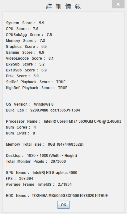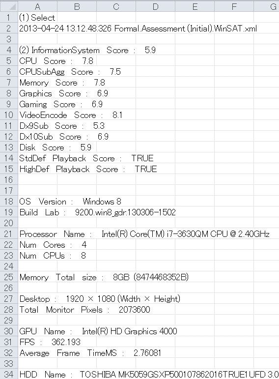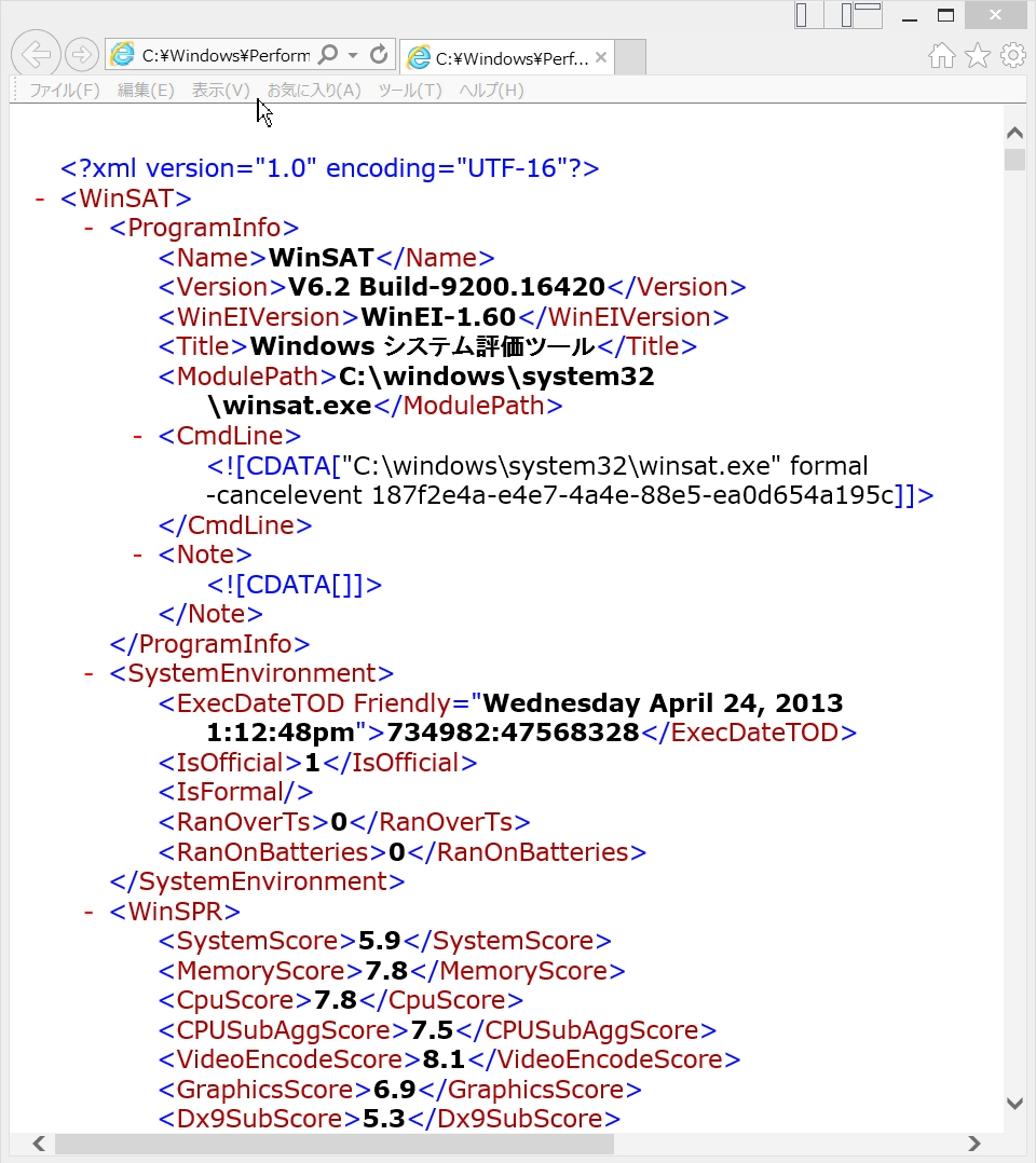 Windows8.1にてWindowsシステム評価機能(Experience index)が