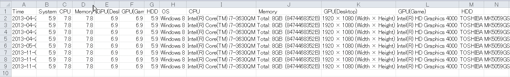 『元Log』ボタンにてスコア取得先のWindows Experience index