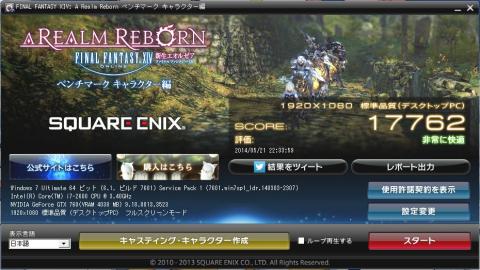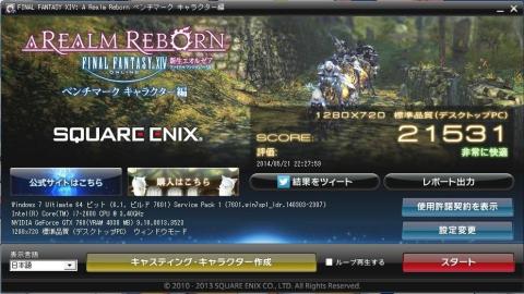 まずは主要目的のFFXIVのベンチマーク:キャラクター編を走らせてみます。