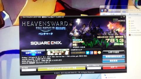 FFベンチも4Kでやって見ましたがDirectX9では7813と非常に快適となりましたが、