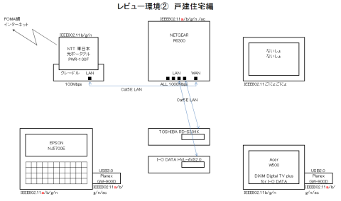 です、どちらの環境もインターネット回線は携帯電話回線になるので、インターネットへの通信速度は測定しません、あくまで家庭内LANとしての環境を想定しています。