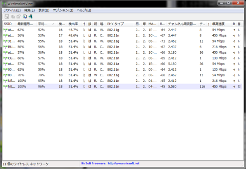 使用したソフトは、「WirelessNetView」と言うソフトです。