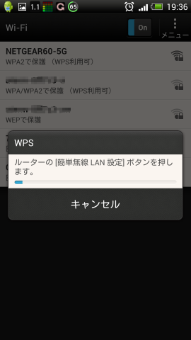 WPSプッシュをせんたくすると、ルータのWPSを起動してちょ!