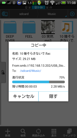 ちなみに、スマホで使うと、20Mbps程度でファイルコピーができ、結構快適です。