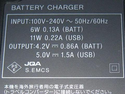 DSC-RX100M2付属のACアダプターはUSB出力 5V 0.5Aですが、