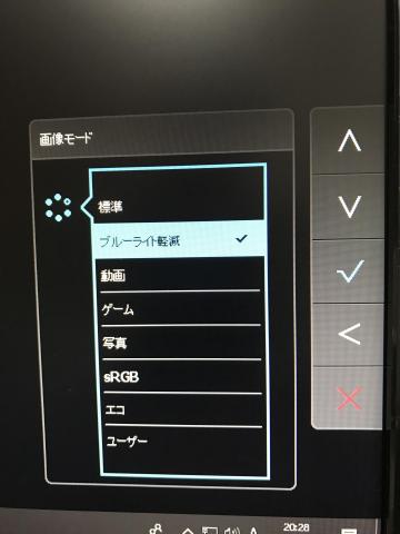 設定画面からブルーライトのモード、画像モードなどの設定ができます。慣れるまで操作はしにくいです。