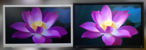 視野角については、カタログ値の通りかどうかキチンと計測していませんが、見える見えないで判断するならばどちらもかなり深い角度まで見えます。ただ色合いや明るさを判断条件に加えると、液晶の駆動方式の違いの差が大きく出ます。IPSパネルを採用する本製品は非常にクリアーで鮮明な状態を保ちながら、極端に減衰することなく広い範囲に渡って見ることが出来るのに対して、TN方式の従来品は、真正面から少し角度を変えただけでも色が変化し、ある角度を超えると陰りが酷くなって見えにくくなります。