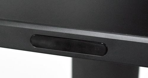 シンプルでありながらも先進的と感じられる部分がありました。それは正面下部に設けられたセンサーパネルです。本製品には人感センサーや明るさを検知するセンサーが組み込まれており、センサーを有効化されている時は、そのパネルに組み込まれたセンサーが常に使用環境を監視しています。