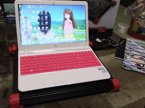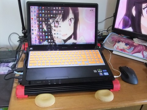 ヒンジ付近が地面に当たるノートPCだとクーラーに当たるのでちょっと倒しに