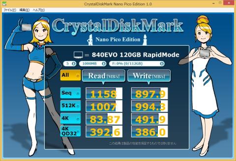 次にRapidモードでのCristalDiskMark。