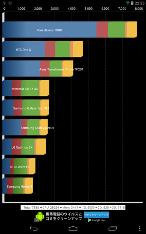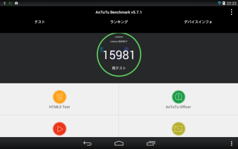 ベンチマークテストのスコアはそれなりですが、性能的には人気のあったandoridタブレットのNEXUS 7 2012と同程度のスコアと、最新のタブレットと比べると見劣りしますが悪くない性能です。