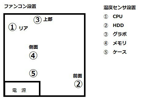 温度センサーとファンコントローラーが5箇所管理できるのでどこに設置するか悩みました。