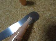 目頭側から目尻側に筆部分でなぞりながら塗ります。
