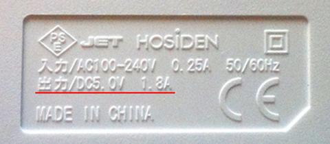 ACアダプタの銘版を見ると、1.8A出力タイプでした。