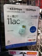USB2.0接続の子機は433Mbps、USB3.0の子機は867Mbps対応の製品が入手可能です。USB2.0の速度が公称480Mbpsなので、433Mbpsが限度ということになるのでしょう。無線LANもUSBも実効速度は公称速度の半分くらいになるので、USB2.0と802.11acの433Mbpsはちょうどいい組み合わせといえます。867MbpsをUSBで活用するためにはUSB3.0(公称5Gbps)が必要となります。
