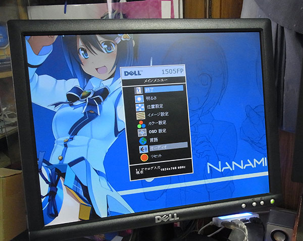 とはいえ年式が古く機能も少ないものが多いのもこの15インチ。まあサブモニタなのでD-Sub1系統でとりあえず写ればいいような用途だしーという訳で、長年三菱製の2台を保持している。