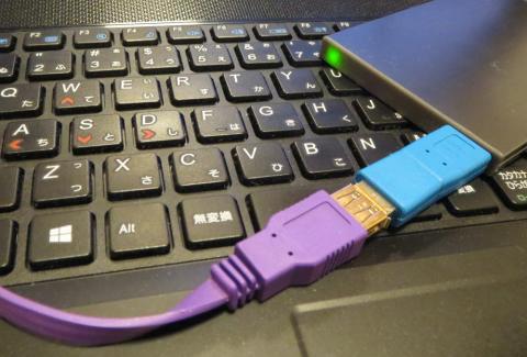 接続してみたところ、既に外付けSSDのランプが USB2.0接続を示す色に...