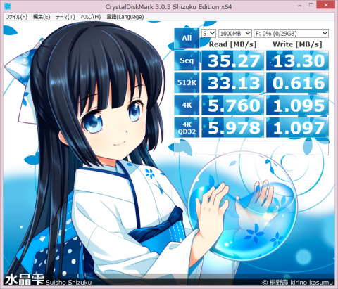 UHS-I (バス速度モード:SDR50)では Read 30MB/s で、書込み速度は公表されず。