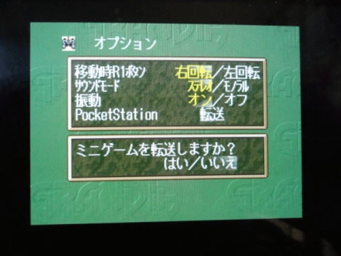 PocketStationアイコンをたっぷすると、メモリーカードのポケットステーションへの差し替え等の指示があります。
