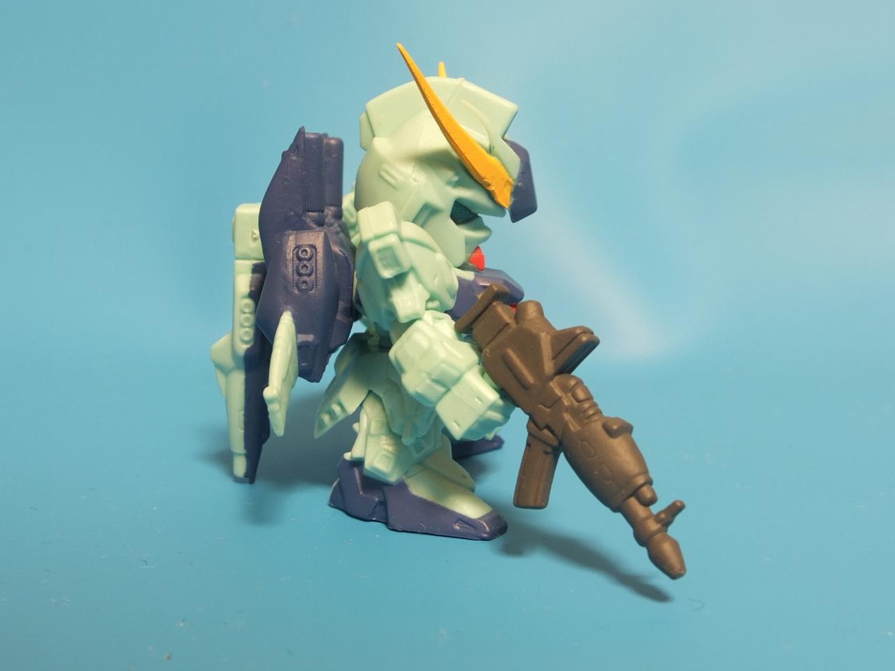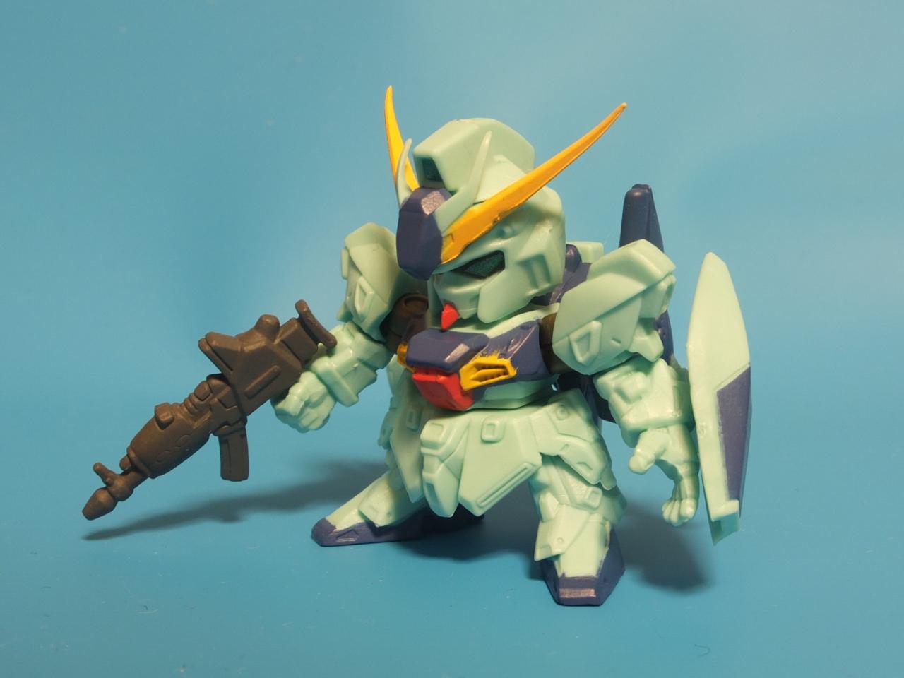 リガズィがガンダム顔になって変形できるようになったMSということで、よりZガンダムに近づいていますが、リガズィ的なふっくらとしたシルエットでもあります。