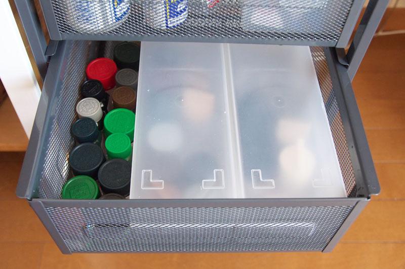 こちらは塗料を入れたり、上に資料を調べたりするノートPCを置くために購入。