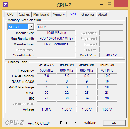 もともとついていた、PC-8500 1GBと同時に起動すると、Windows8.1でメモリマネジメント系のBSOD発生しまくるので、4GB1枚での運用になりそうです。