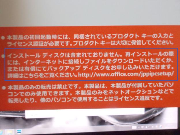 さらにoffice2013も付属している豪華ぶりですが、インストールディスクが