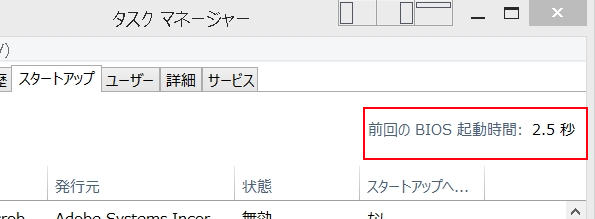 タスク・プロパティで起動速度が 確認できます。