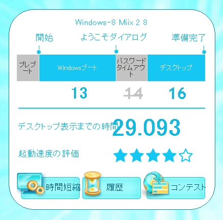 BootRacerという起動速度を計測するソフトを使用。