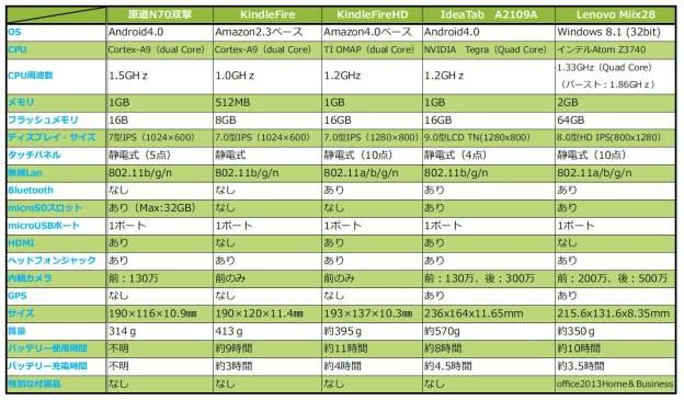 ◎タブレット比較表(クリックで拡大)