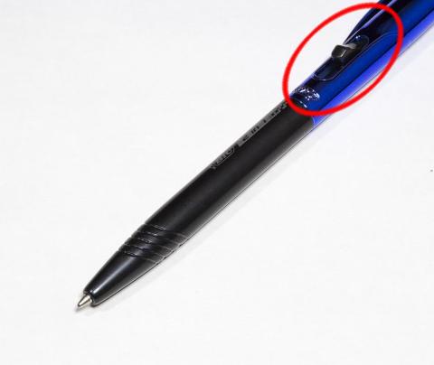 ボールペンを使用するにはクリップ横にあるサイドノックでペンの出し入れをします。