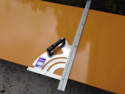 大きさは種類が色々ありますが、50cm~60cmの2尺までのカットは自作定規で、それ以上はこれにすることにしました、結構木材定規は重くて滑るので途中で曲がっちゃったりするので、アルミで出来ていて軽いですので、市販品もお薦めです