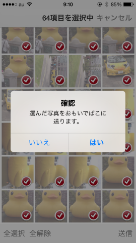 次にiPhoneから写真をおもいでばこへ転送してみますよ。