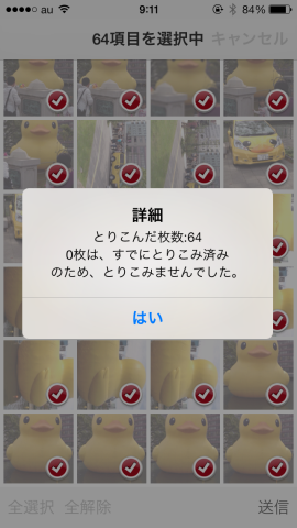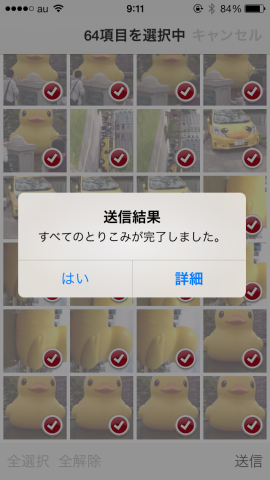 【64枚の写真をiPhoneからおもいでばこへ転送完了までの時間】
